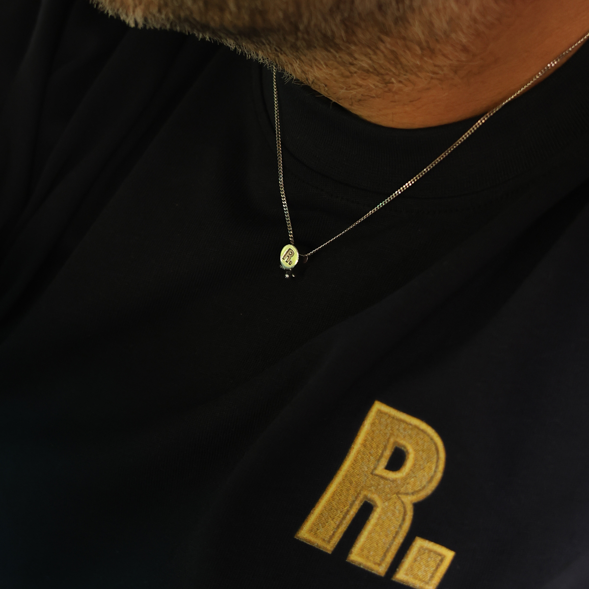The circular pendant features the iconic R. insignia, the Racing Relics mark,